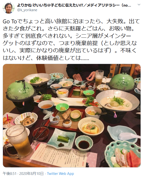 【画像】「GoToで高い旅館に泊まったら、出てきた夕食がこれ。大失敗。明らかに時代遅れ」 ニュース 2020-08-13 GoTo登録、宿泊施設の3割どまり 中小に広がらず国内旅行の需要喚起策「Go To トラベル」に登録した旅館・ホテルが全体の3割程度にとどまっている。大手旅行会社の商品に組み込まれた大型旅館・ホテルなどが中心で、中小・零細の宿泊施設の登録は進んでいない。直接予約の旅行だと施設と旅行者の手続きが煩雑になるためだ。1兆円を超える巨大事業の恩恵が大手事業者に偏りかねない。https://www.nikkei.com/article/DGXMZO62534510R10C20A8EE8000/ 関連記事 最新FANZA セール紹介ページ 渚みつき主演作品(fanza動画) 本日の美女画像 牧野結美フライデーベッド画像流出その後、FRIDAYが凄すぎたwww 2ch「めざまし降板すべき」「レーズン女子アナ」 牧野結美フライデーベッド画像流出その後、FRIDAYが凄すぎたwww 2ch「めざまし降板すべき」「レーズン女子アナ」 大阪・ジェットコースター死亡事故・目の前にいた少女のブログ [おもしろコミュニティ 縁count] 無修正動画で逮捕された木村雪乃(21)の未公開映像が次々と流出(動画あり) 人気AV女優とエッチな生チャット 関連記事をもっと見る コメントを残す コメントをキャンセルメールアドレスが公開されることはありません。 ※ が付いている欄は必須項目ですコメント ※ 名前 ※ メール ※ サイト 次回のコメントで使用するためブラウザーに自分の名前、メールアドレス、サイトを保存する。